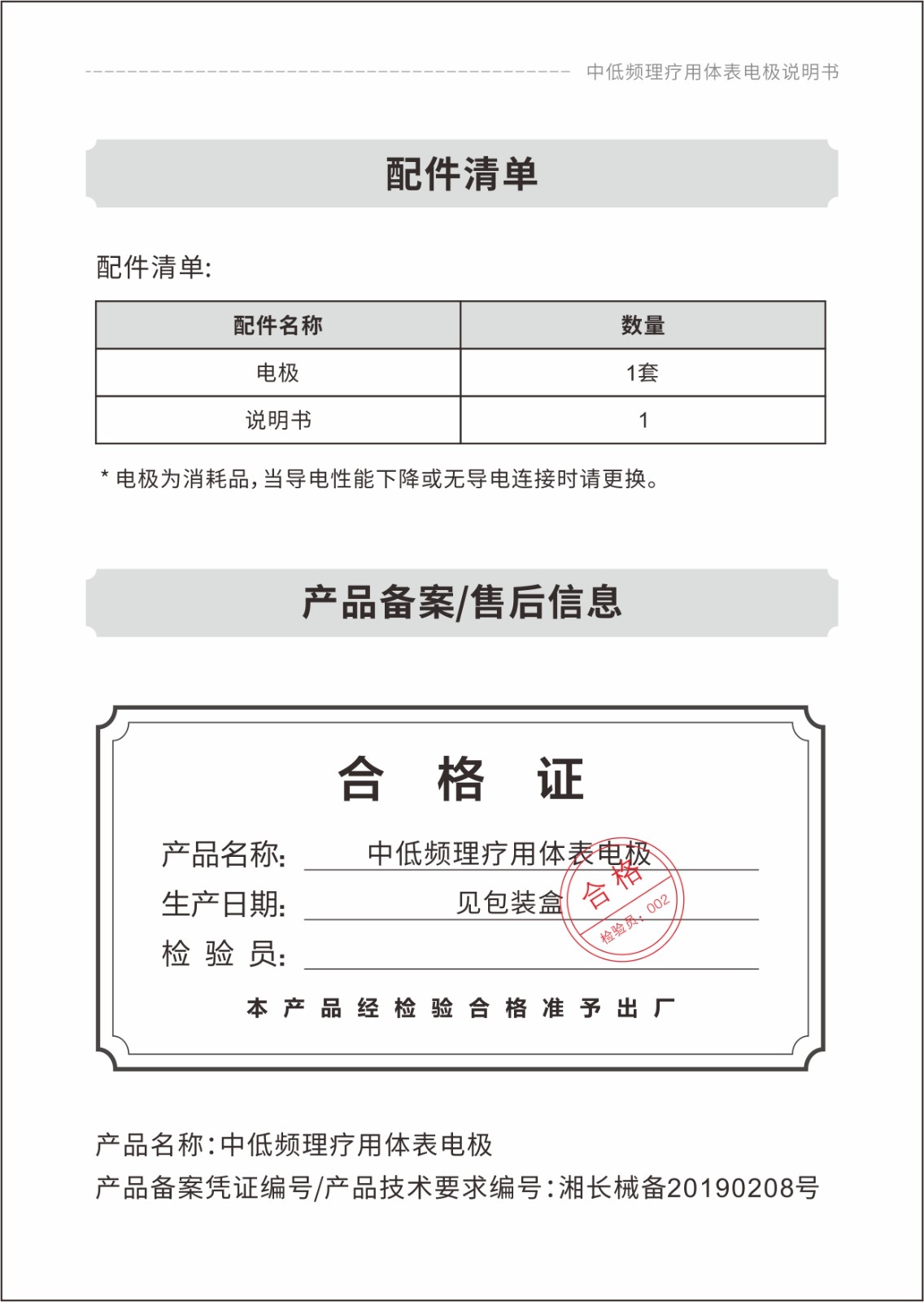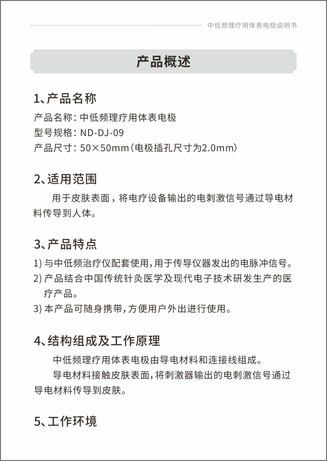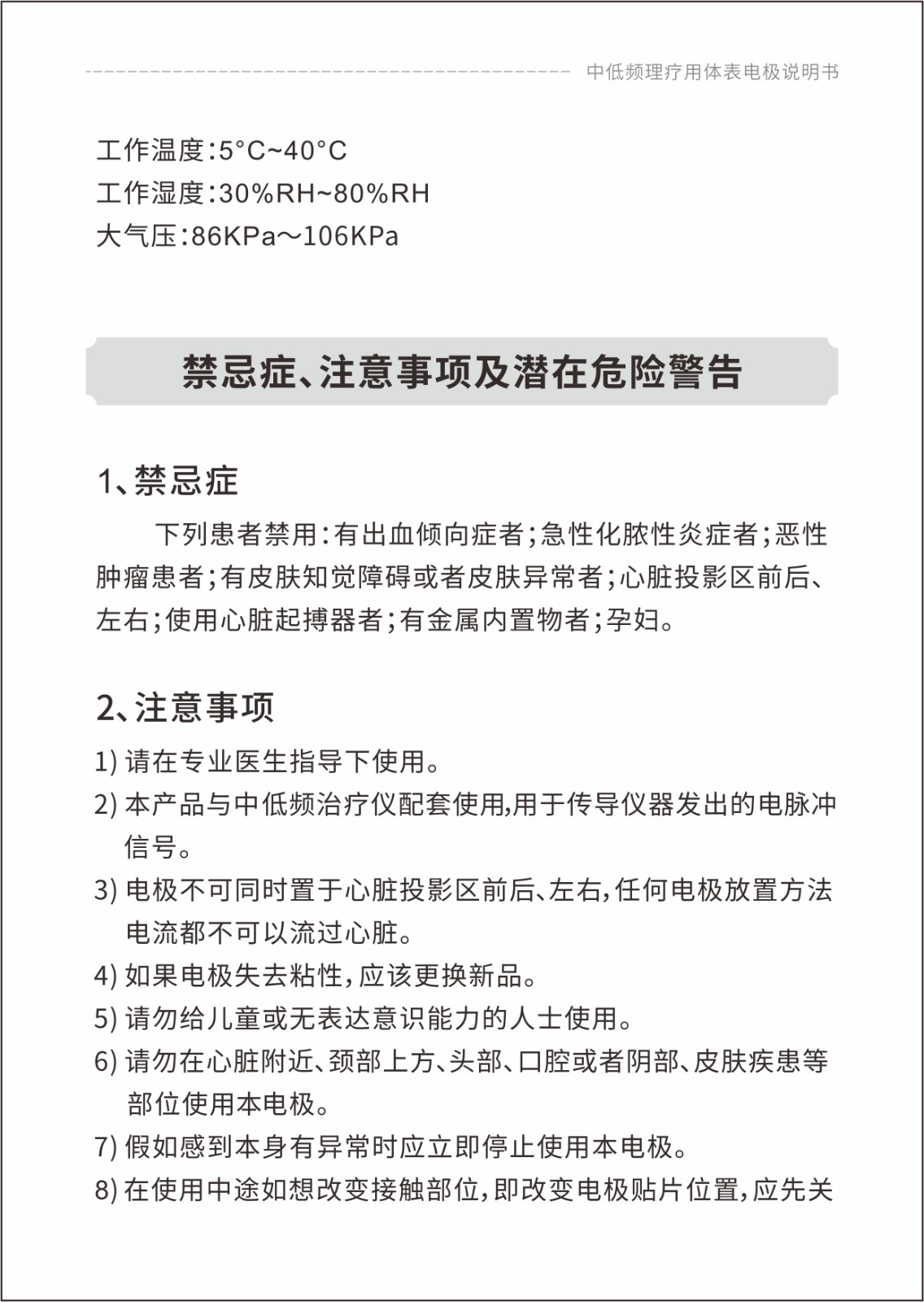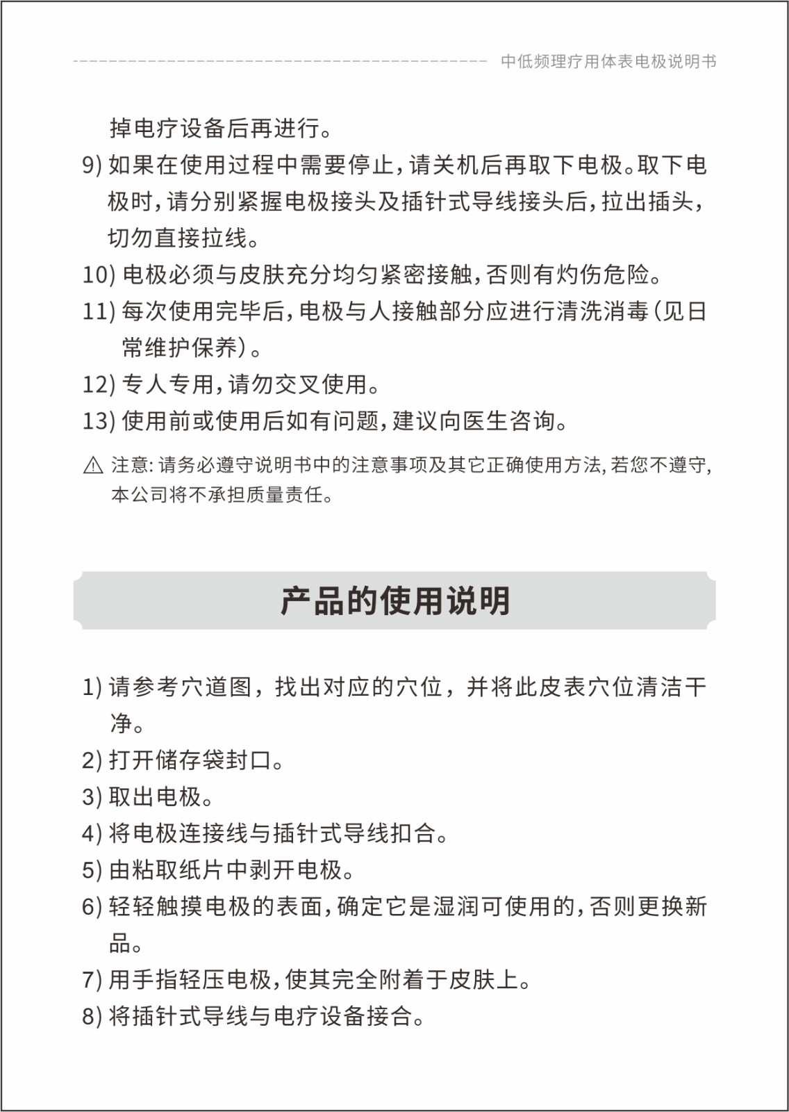 中低頻理療用體表電極貼片說明書